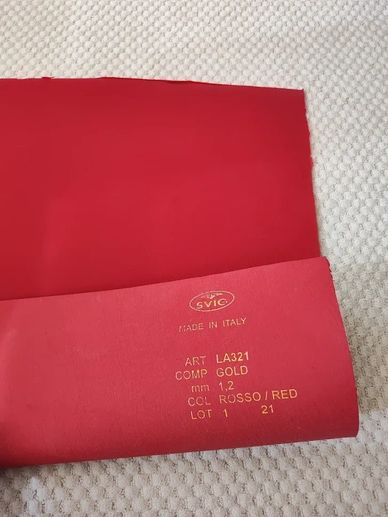 SVIG, based in Vittorio Veneto (Treviso) Italy, was founded in 1948, Their one-layer rubber compound offers the best resistance to abrasion in SVIG's hardness category (GOLD). SVIG produces two distinct red sheets: non-gloss version LA321, 1.2mm (shown) and high-gloss LA150 (not pictured) 1.5mm thickness.